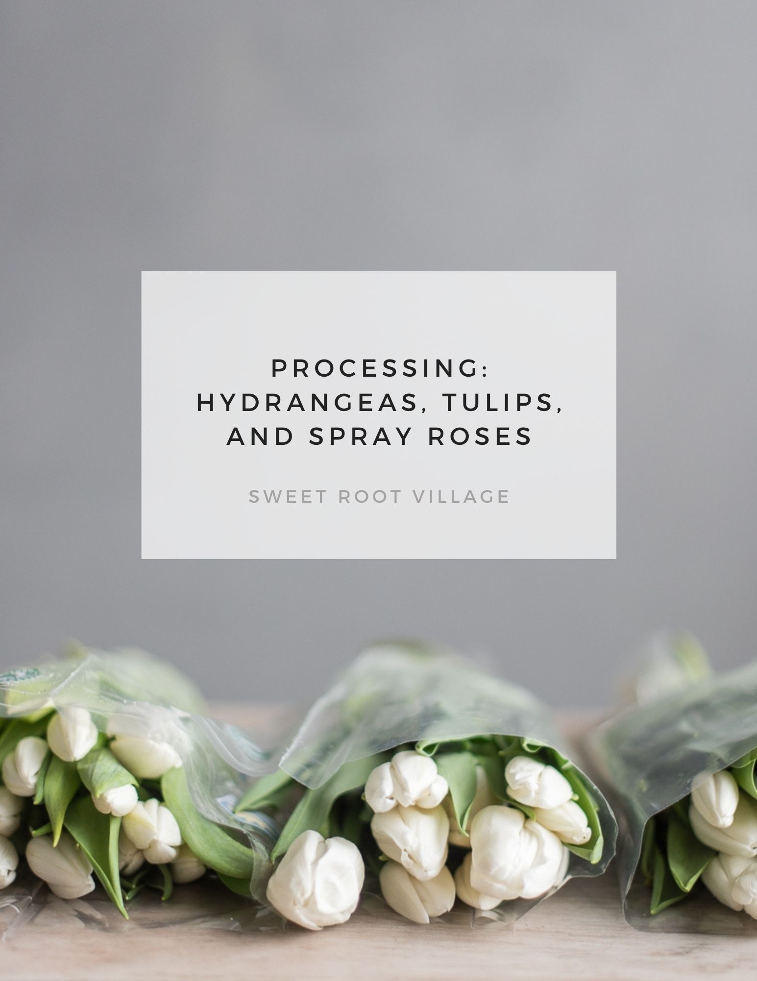 This 23 page digital guide will walk through our unboxing and processing methods of three staple flower types: Hydrangeas, Tulips, and Spray Roses. Great for beginning learners!