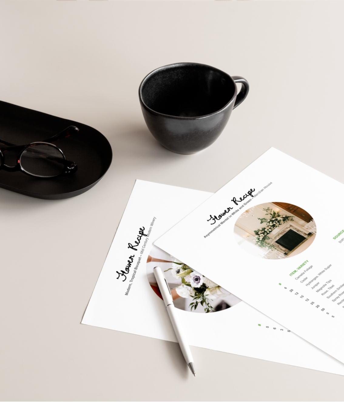 A monthly minimum of 4 downloadable detailed floral recipe sheets! Each recipe post includes images, vase sources, floral product sources that coordinate with the seasons, as well as descriptions of our process and explanation of mechanics. You can expect an even mix of bouquet designs, centerpieces, and installations of all varieties.